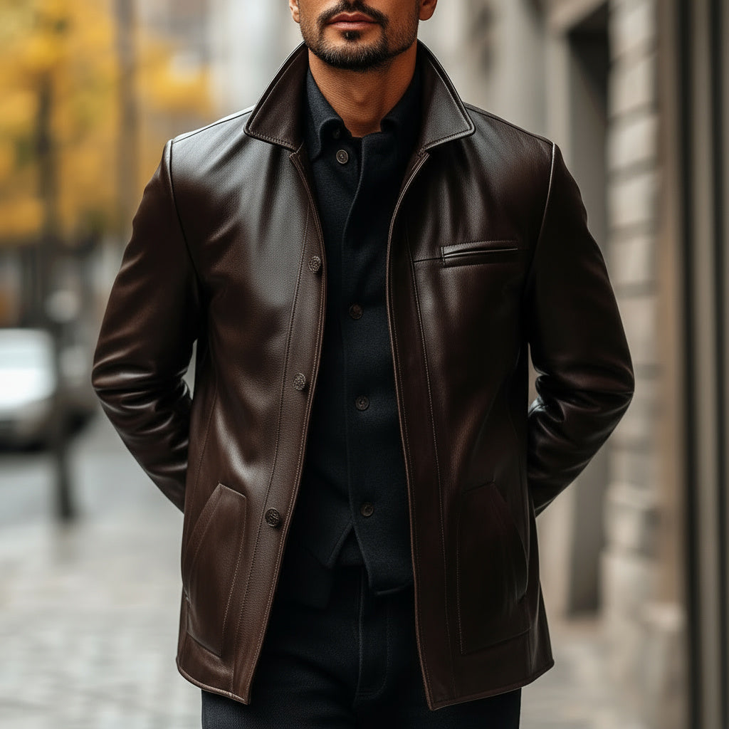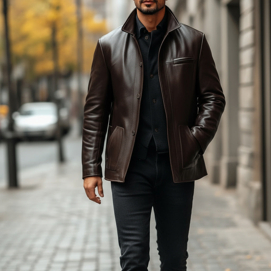 "This leather jacket is an absolute dream! The quality is outstanding, with buttery soft leather that feels incredibly luxurious. I love the classic moto style with the asymmetrical zipper and snap-button collar - it adds just the right amount of edge to any outfit. The fit is perfect, with a slightly cropped length that hits right at the waist. Plus, the jacket is surprisingly warm, making it perfect for layering over sweaters on chilly days. Overall, it's the perfect combination of style, comfort, and quality - I couldn't ask for anything more."