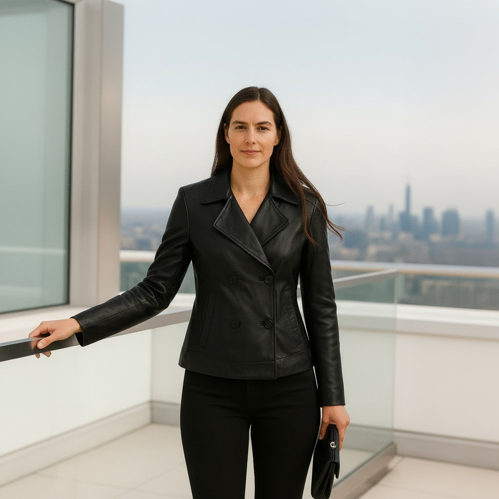 "This leather jacket is an absolute dream! The quality is outstanding, with buttery soft leather that feels incredibly luxurious. I love the classic moto style with the asymmetrical zipper and snap-button collar - it adds just the right amount of edge to any outfit. The fit is perfect, with a slightly cropped length that hits right at the waist. Plus, the jacket is surprisingly warm, making it perfect for layering over sweaters on chilly days. Overall, it's the perfect combination of style, comfort, and quality - I couldn't ask for anything more."